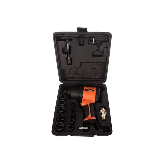Ударный пневмогайковерт Gigant PW 720 + набор головок подходит для закручивания/откручивания гаек и болтов. Оснащен ударным механизмом Twin Hammer, который помогает справиться даже с приржавевшим крепежом.