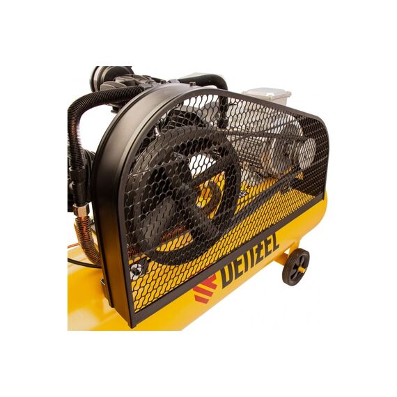 Воздушный компрессор с ременным приводом DENZEL BCW3000-T/100, 3,0 кВт, 100 литров, 520 л/мин 58118 обладает высокой мощностью и производительностью, что позволяет использовать его для организованной подачи воздуха через магистраль.