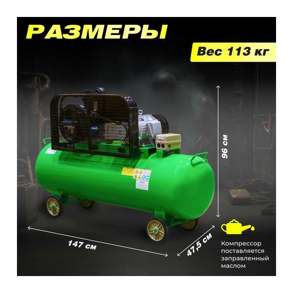 Мощная компрессорная головка обеспечивает высокую производительность при минимальном расходе энергии и создает оптимальную степень сжатия. Для хранения воздуха установлен ресивер - можно проводить быстрые работы без запуска двигателя.