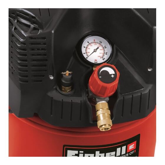 Он оснащен регулятором давления, с помощью которого можно настраивать рабочее давление до 8 бар, а также является незаменимым помощником при выполнении самых разнообразных работ, требующих использования сжатого воздуха.