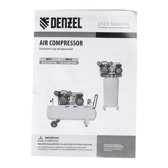Компрессор поршневой Denzel BCV2300/100 масляный желтый/черный