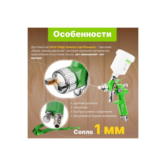 Достоинства HVLP (High Volume Low Pressure - "высокий объем, низкое давление")