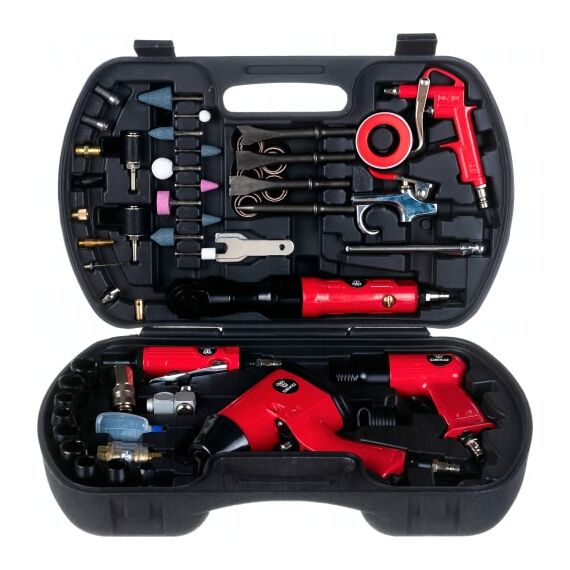 Набор пневмоинструмента и аксессуаров DEKO DKPT61 018-1105 применяется в массовом производстве, автосервисах, шиномонтажных мастерских и т.д.
