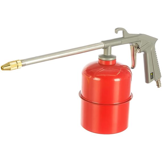 Пистолет для мойки двигателя ЭВРИКА ER-76005 подходит для удаления грязи с поверхностей. Оснащен металлическим бачком емкостью 900 мл.