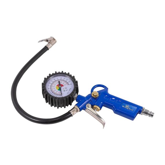 Пистолет для подкачки шин KingTul с манометром и шлангом - надежный помощник при подкачке шин и контроле давления воздуха в колесах автомобилей. Устройство подключается к пневмолинии через Евро штуцер, а также имеет клапан сброса давления. Гибкий шланг длиной 320 мм позволяет легко достигать труднодоступных мест. Корпус манометра защищен резиновым кожухом, что обеспечивает дополнительную защиту от повреждений. Аналоговый манометр показывает давление от 0 до 16 Bar. Высококачественный наконечник из латуни оснащен надежным зажимом (клипсой), что гарантирует долгий срок эксплуатации. Эргономичная рукоятка обеспечивает комфортную работу. Пистолет для подкачки шин с манометром и шлангом прекрасно подходит для использования на шиномонтажах, СТО, в мастерских и гаражах.