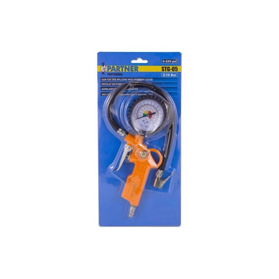 Пистолет для подкачки шин PARTNER (0-16 bar)- это инструмент для подкачки шин и контроля давления воздуха в колесах автомобилей.