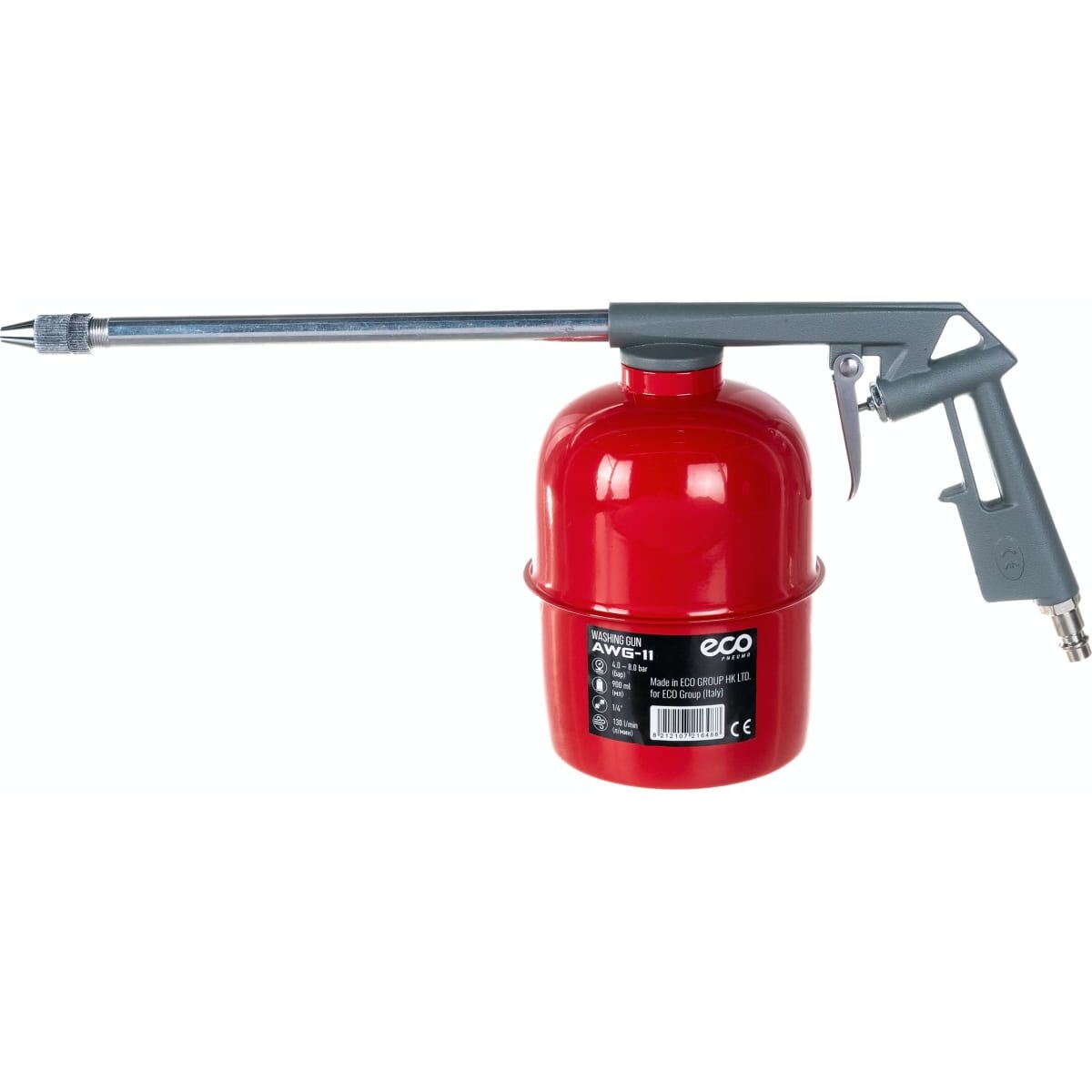 Распылительный пистолет ECO AWG-11 предназначен для мойки и смазки поверхностей, узлов или деталей потоком моющей жидкости и воздухом. Подключается к источнику сжатого воздуха (компрессору).