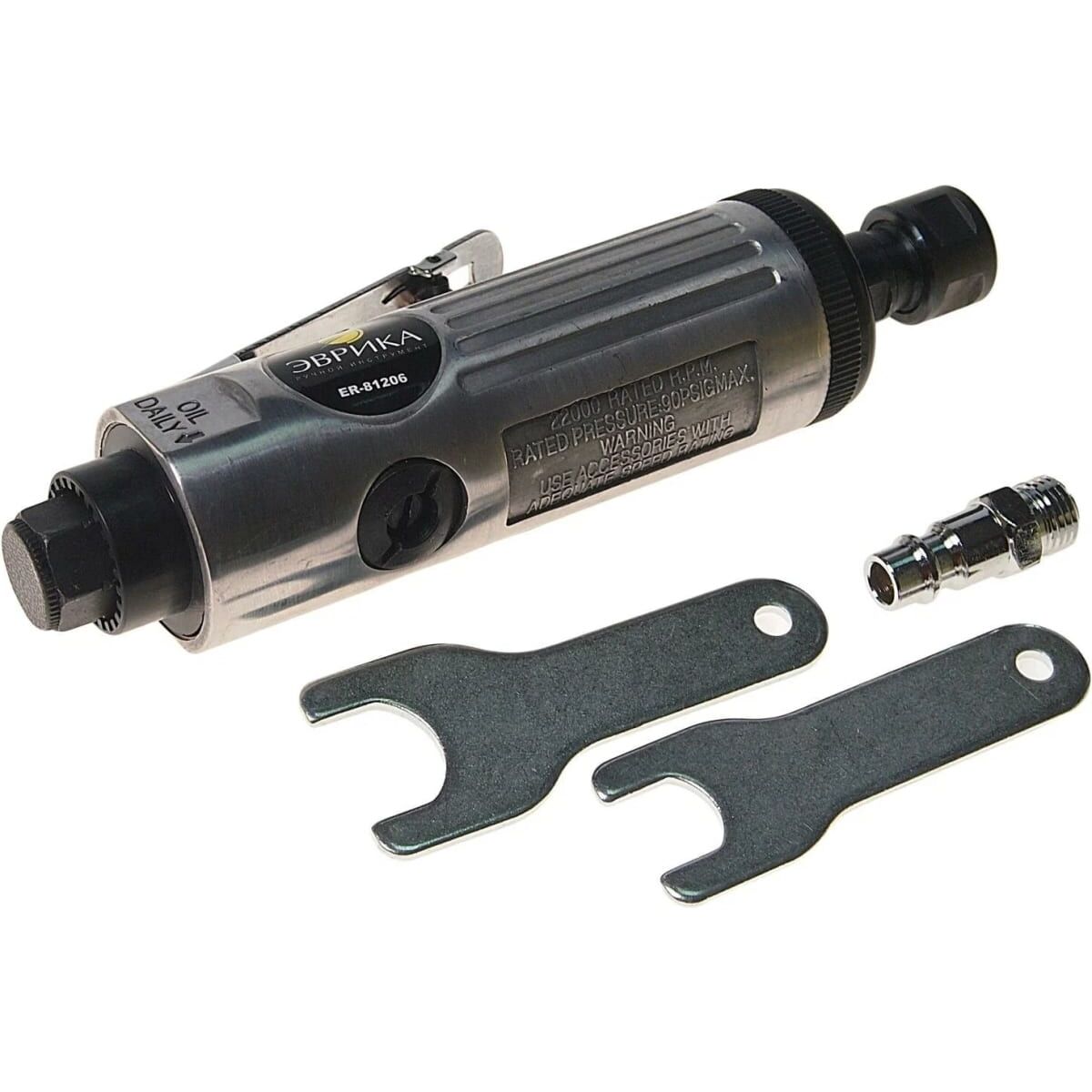 Пневмобормашинка ЭВРИКА ER-81206 надежна и удобна в эксплуатации. Предназначена для выполнения шлифовально-зачистных работ. Высокая скорость вращения шпинделя позволяет легко зачищать края деталей. Прочный корпус устойчив к механическим повреждениям. Широкая клавиша "Пуск" способствует комфортной работе.
