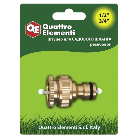 Штуцер для шланга QUATTRO ELEMENTI 246-357 внутр. резьба 1/2" и 3/4"-БРС папа, латунь