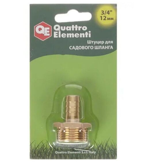 Штуцер для шланга 3/4" х 12 мм QUATTRO ELEMENTI 771-848 предназначен для подключения садовых шлангов к системам водоснабжения.