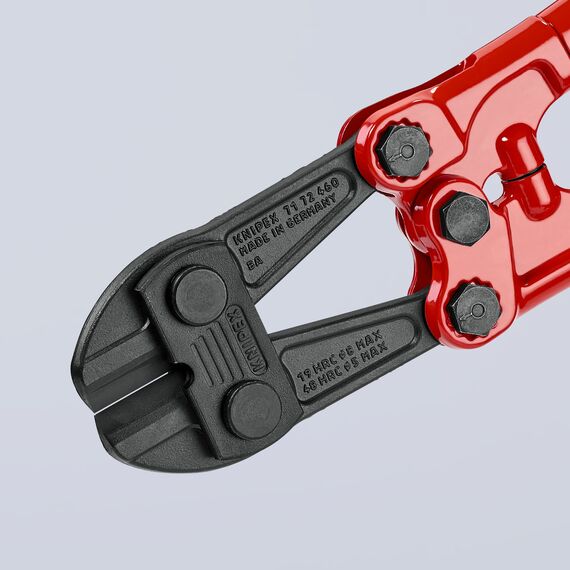 Болторез KNIPEX Коболт KN-7172460 оснащен сменной ножевой головкой из высококачественной хромованадиевой стали. Твердость лезвий составляет примерно 62 HRC. Особая конструкция шарниров в сочетании с оптимальным передаточным отношением рычагов существенно увеличивает режущую способность инструмента и снижает усилия оператора. Для смягчения ударов при резке предусмотрен ограничитель с гасящей накладкой. Рукоятки снабжены чехлами с мягкими накладками, что обеспечивает надежный хват.