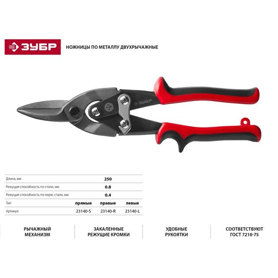 Описание Ножницы по металлу для точного реза листового металла, режущая способность: сталь 0.8 мм, нерж. 0.4 мм