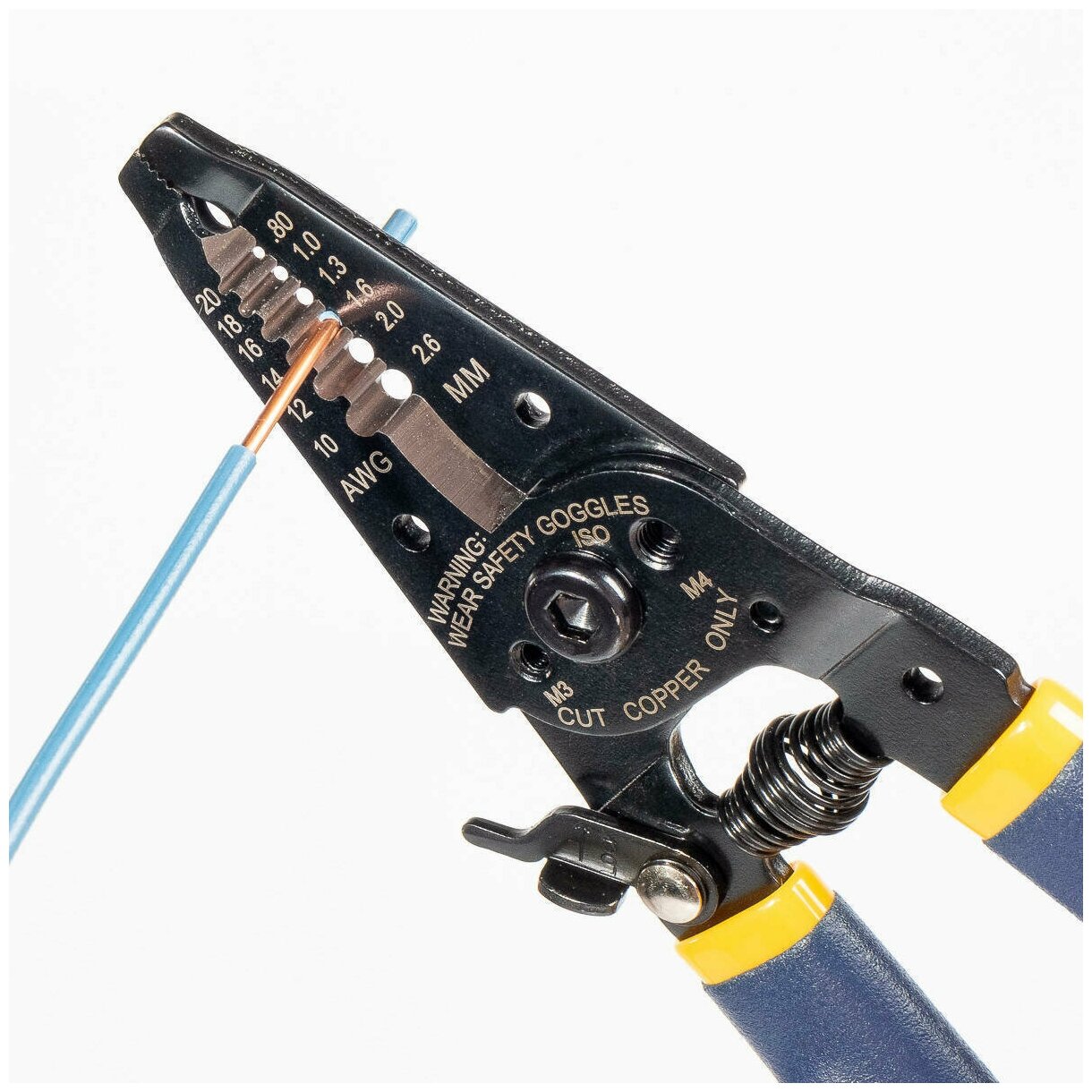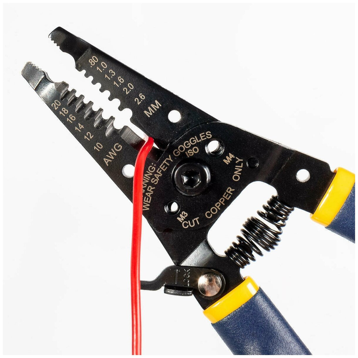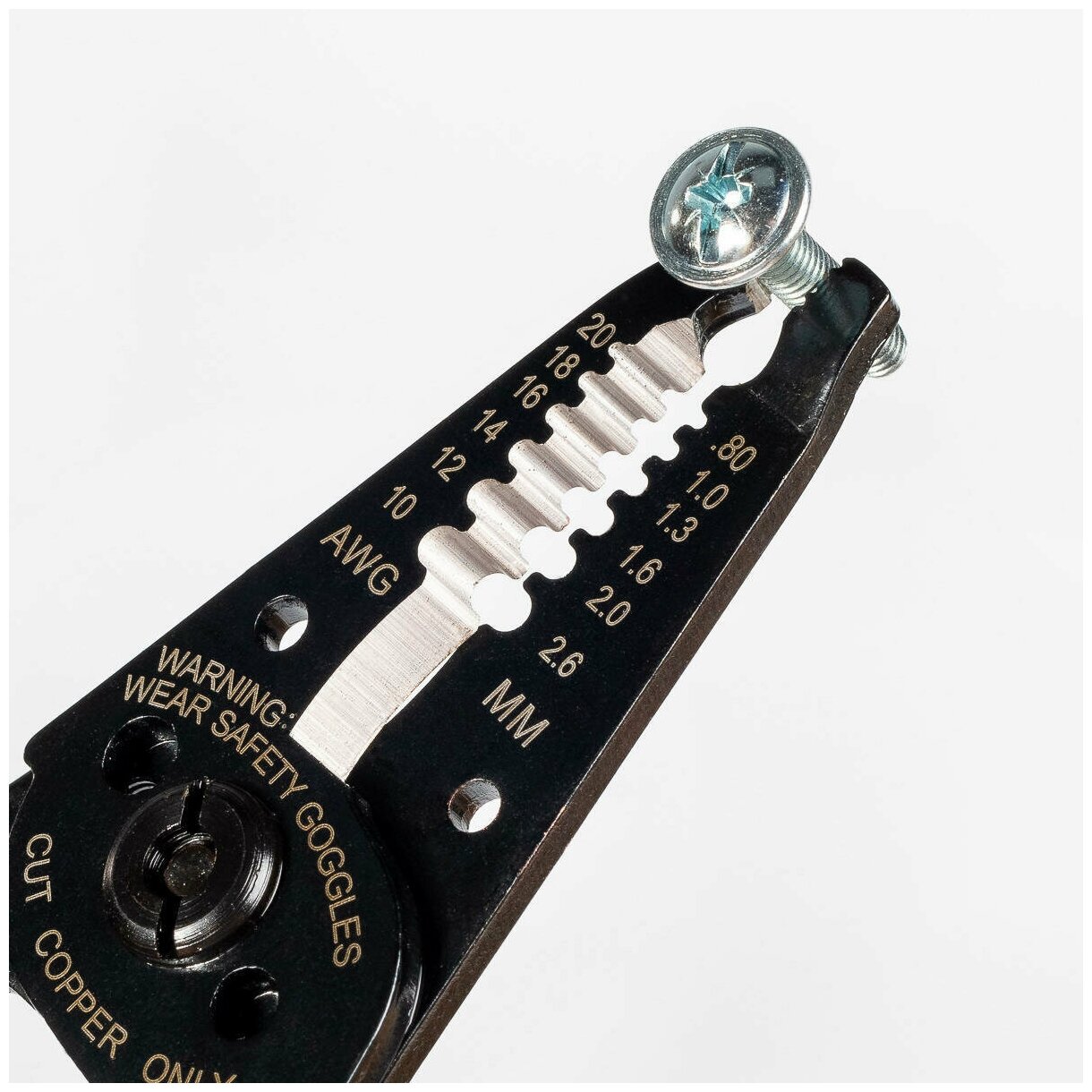 Инструмент для снятия изоляции КВТ WS-01C 55947 сочетает в себе все необходимые функции для проведения электромонтажных работ. Корпус изготовлен из инструментальной стали, что определяет высокую прочность инструмента. Шестипозиционные прецизионно заточенные режущие кромки легко удаляют оболочку с кабеля сечением 0.5-4.0 мм². Двухслойные нескользящие рукоятки способствуют комфортной и безопасной работе.