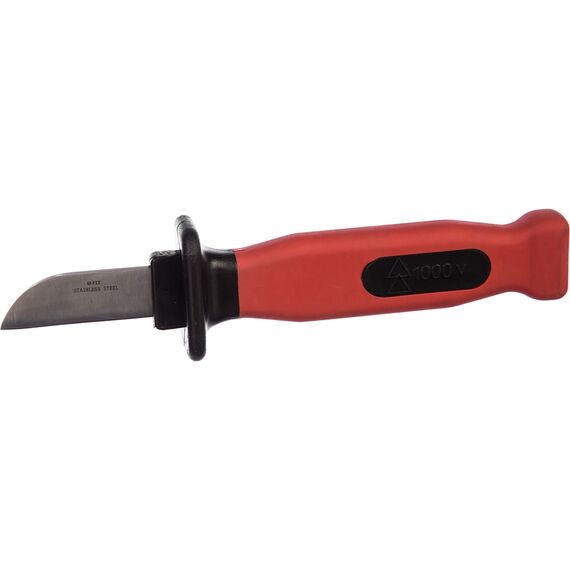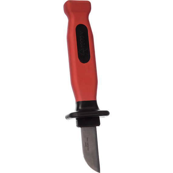 Изолированный нож FIT 1000 В, нерж.сталь, лезвие 50мм, прорезин.ручка 10605 служит для зачистки изоляционной оболочки проводов и кабелей. Изделие защищает пользователя от поражения электрическим током при выполнении работ на установках под напряжением до 1000В переменного тока и до 1500В - постоянного тока. Лезвие ножа изготовлено из нержавеющей стали, рукоятка выполнена из пластика и имеет обрезиненную поверхностность. Пластиковые ножны защищают лезвие при хранении и транспортировке.