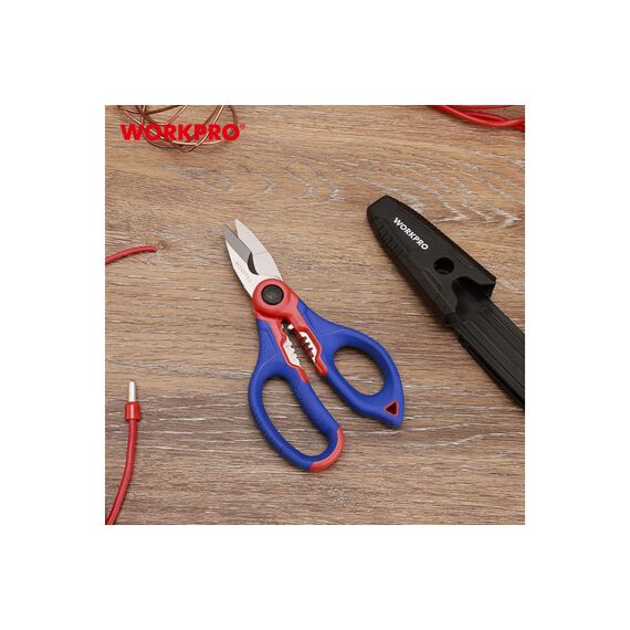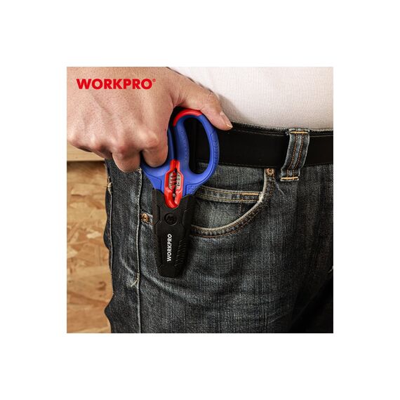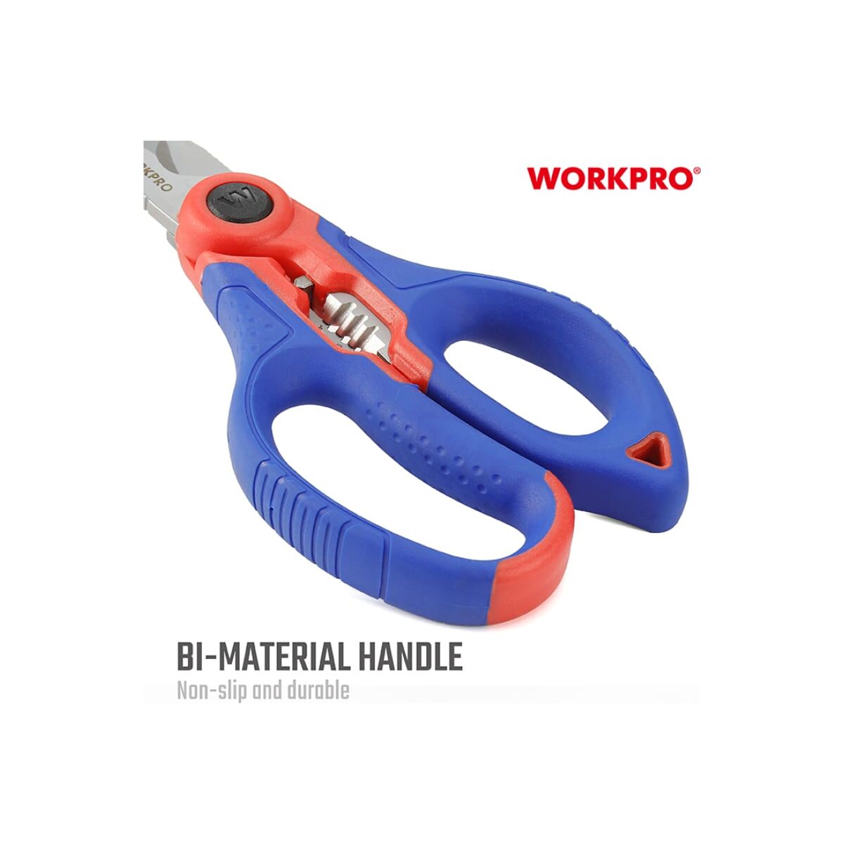 Ножницы электрика WORKPRO WP294003 имеет 5 отверстий для зачистки 10-18AWG