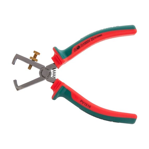 Диэлектрические пассатижи для снятия изоляции имеет длину 160 мм. Исполнение из хромованадиевой стали с эргономичными ПВХ рукоятками.