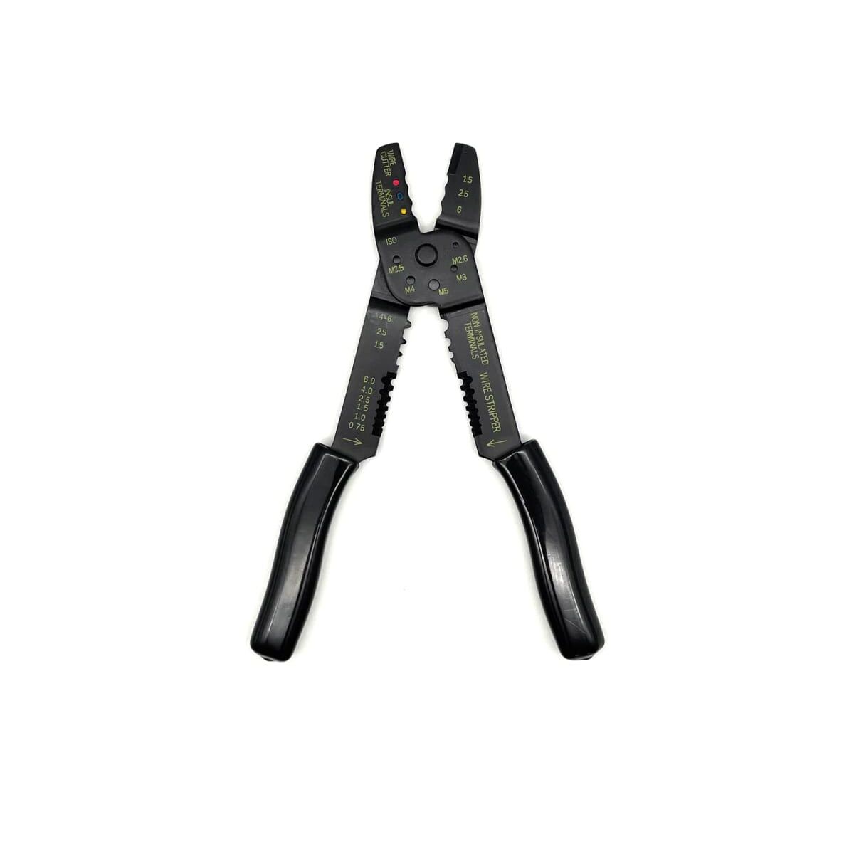 Пресс-клещи Felo для изолированных и неизолированных кабельных наконечников 0,75-6 мм2 59232040 применяются для качественной и быстрой резки кабелей, удаления изоляции с проводов, а также опрессовки кабельных кольцевых изолированных наконечников и штекеров. Подходят для зачистки проводов сечением от 0,75 до 6,0 мм, обжима клемм на проводах сечением от 1,5 до 6,0 мм. Также инструмент обладает режущими элементами для разрезания медных и латунных резьбовых шпилек М 2,6, М 3,0; М 3,5; М 4,0 и М 5,0. Клещи просты и удобны в применении, их прорезиненные рукоятки имеют эргономичную форму для удобства удержания, а корпус выполнен из прочной закаленной стали.