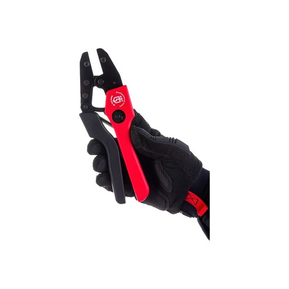 Рабочая часть пресс-клещей устроена таким образом, чтобы можно было менять матрицу для опрессовки в зависимости от потребностей оператора.