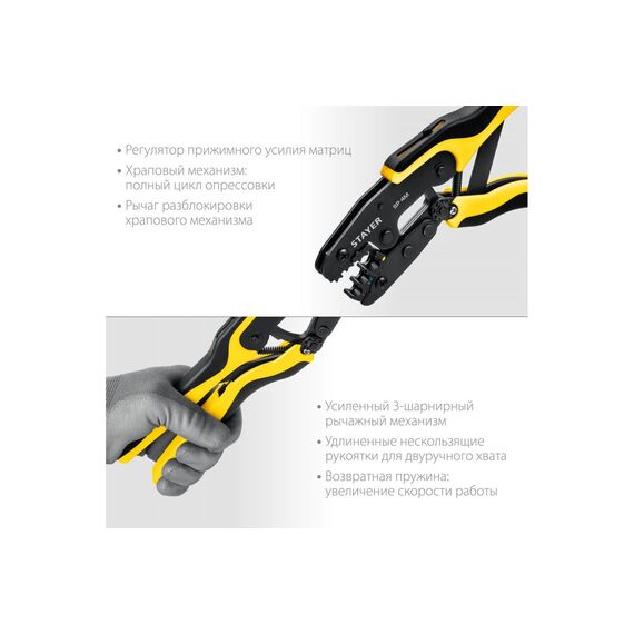 Пресс-клещи STAYER Professional SP-4M (45445) +4 матрицы, в сумке чехле
