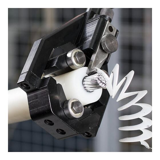 Кабель зажимается за счет вращающейся рукоятки. Ручка инструмента удобно располагается в ладони и не выскальзывает. Снятие изолирующего материала осуществляется как под прямым углом, так и на конус.
