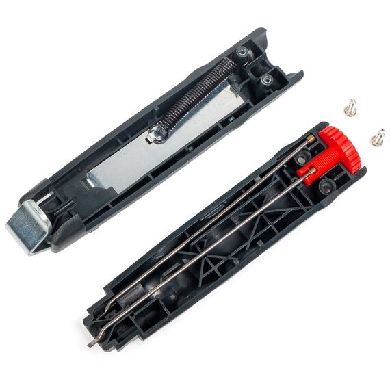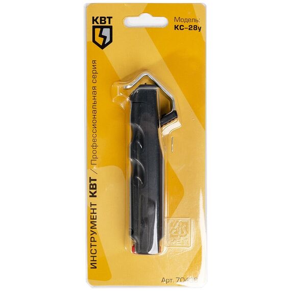 Инструмент для снятия изоляции КВТ КС-28у 70438 аккуратно делает надрезы на кабеле и снимает слой оболочки без повреждения металлических жил. Представляет собой компактное устройство в виде эргономичной рукоятки с прижимной скобой, которая фиксирует провод в рабочей зоне. С помощью автоматически поворачивающегося ножа и регулировки глубины реза можно осуществлять как продольные, так и поперечные разрезы защитных оболочек кабеля.