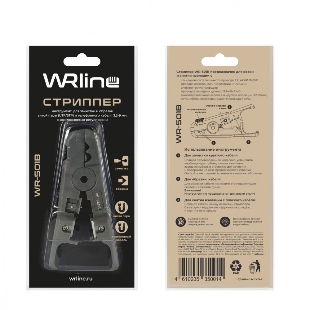Тип зачищаемого кабеля: витая пара UTP/STP