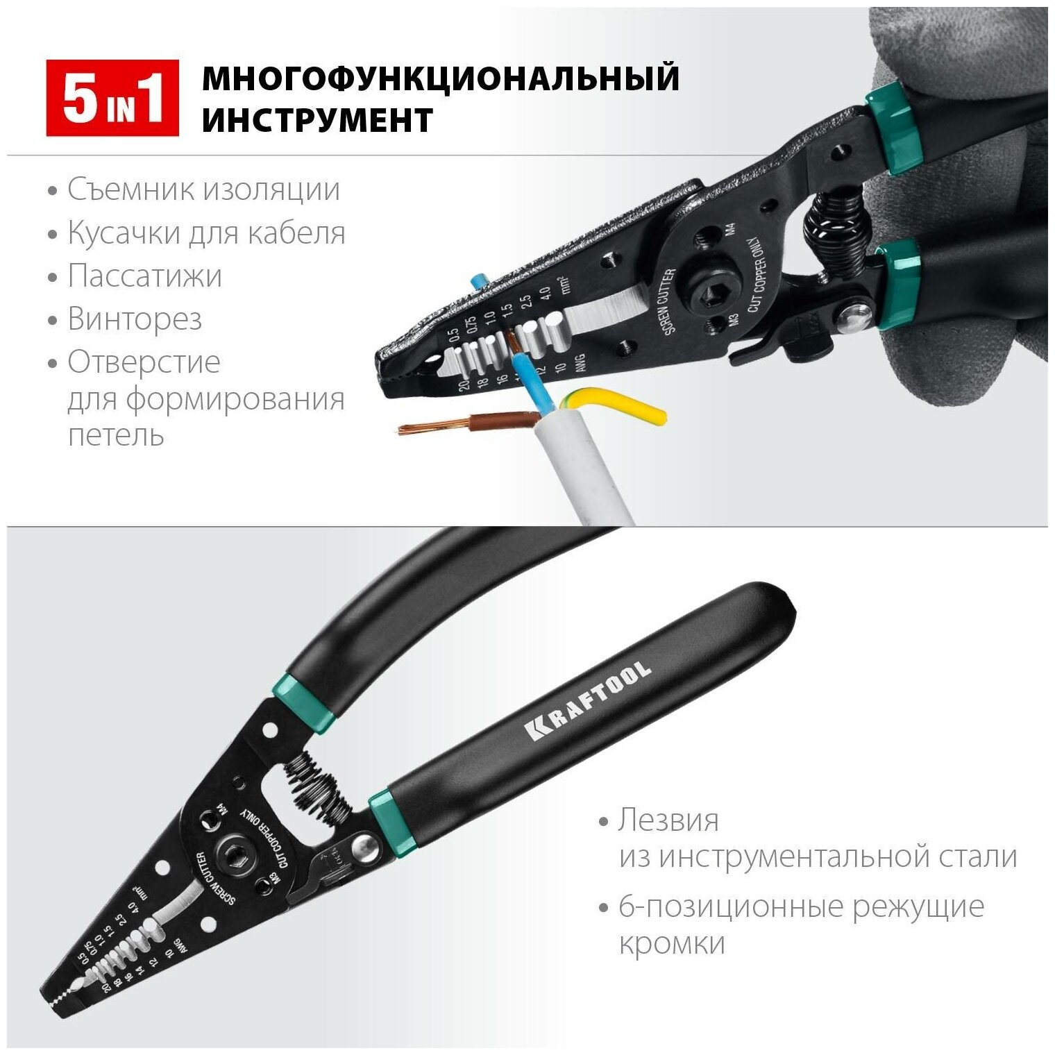 Стриппер KRAFTOOL PK-40 многофункциональный, 0.5 - 4 мм² 22659 - это профессиональный инструмент для надежного и быстрого бесприпойного электромонтажа в соответствии со стандартом DIN. Данная модель имеет усиленную конструкцию, со специально разработанными инструментами. Такое исполнение позволяет выполнять полный цикл работ с электрическими проводами в условиях высоких нагрузок.