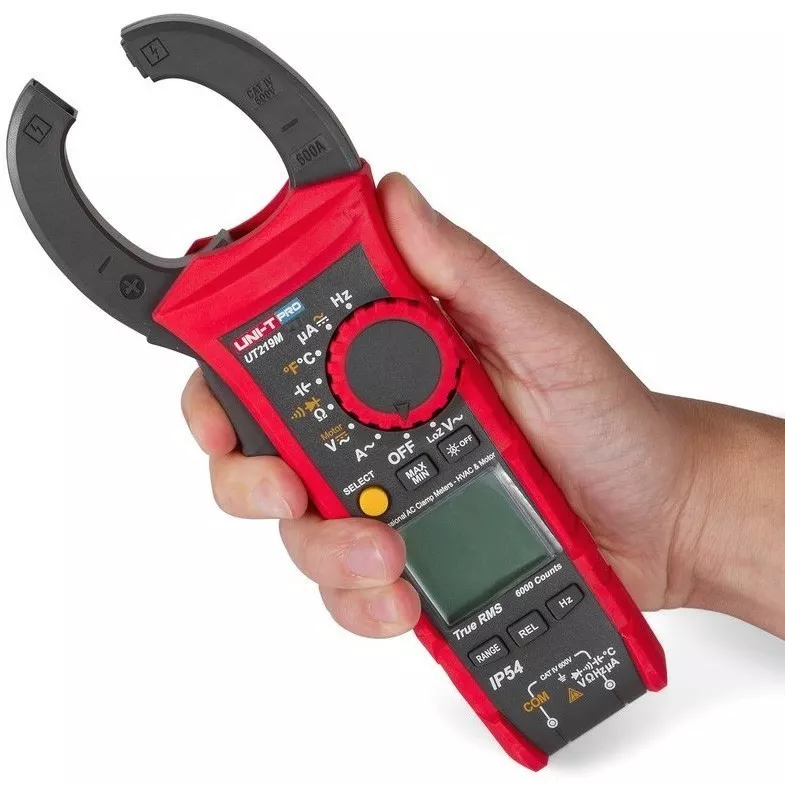 Токоизмерительные клещи бренда UNI-T модели UT219M используются для измерения постоянного и переменного напряжения и тока, сопротивления. Есть подсветка дисплея, подсветка рабочей области, автоматический и ручной выбор диапазона измерений. Есть функция проверки последовательности 3-фазных двигателей 600 В.
