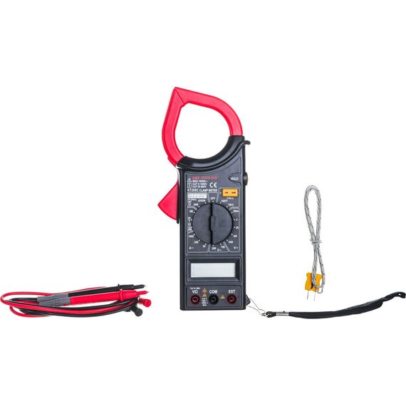Цифровые токовые клещи КВТ KT 266C PROLINE 79132 измеряет переменный ток, напряжение, сопротивление и температуру.