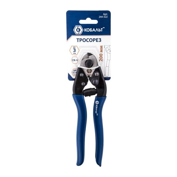 Тросорез КОБАЛЬТ 244-322 200мм, CR-V, до 3мм, подвес 1шт