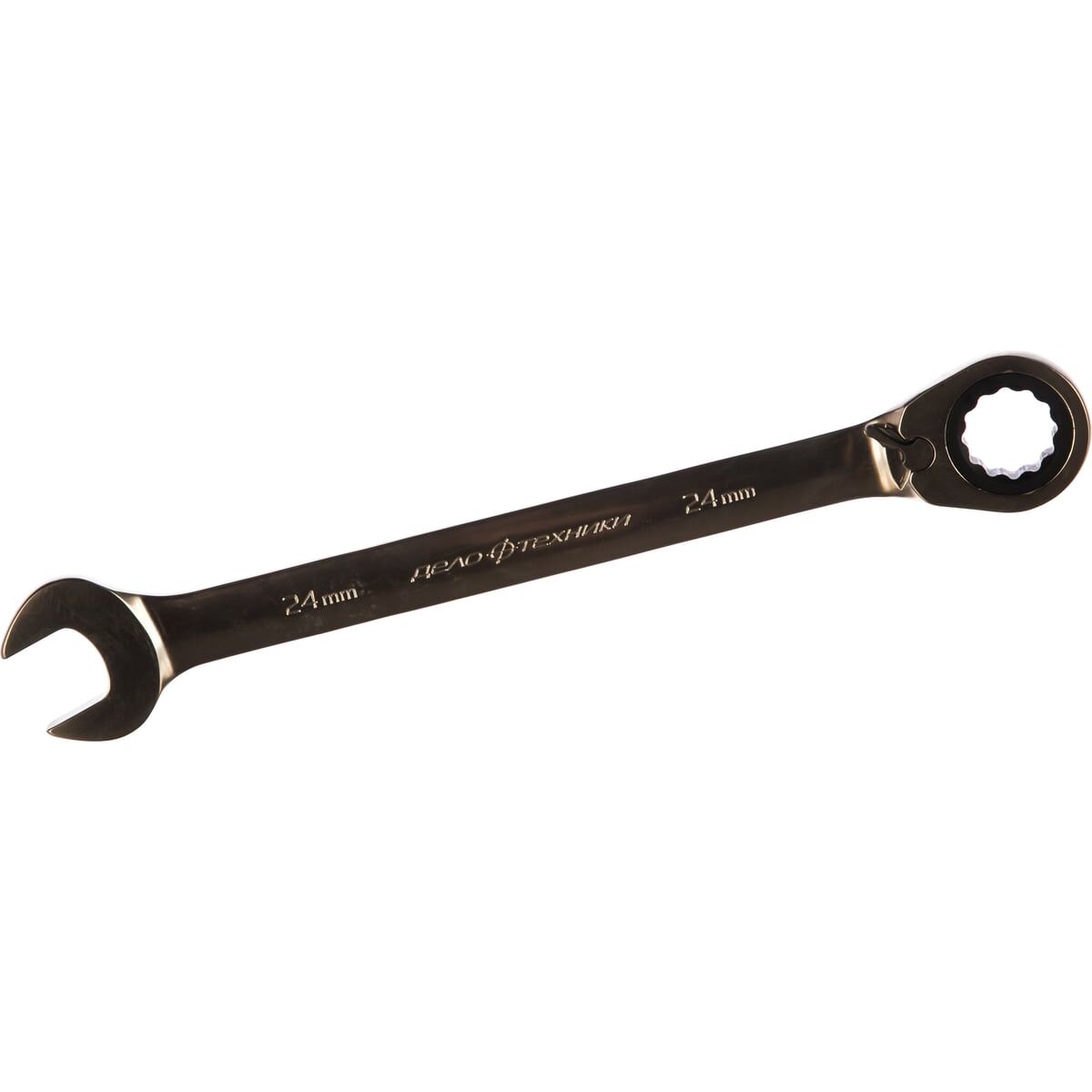 Комбинированный трещоточный ключ с переключателем 24 мм Дело Техники ДТ 50/5 515224 предназначен для работы с резьбовыми соединениями. Конструкция выполнена из высококачественной прочной хромванадиевой стали. Состоит из рожкового ключа и трещотки с 72-зубцовым механизмом. Переключатель необходим для удобного использования без смены руки. Накидная часть имеет изгиб под углом 10°.