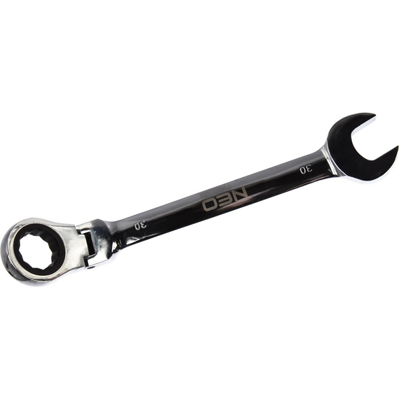 Комбинированный ключ с трещоткой NEO 30 мм 09-058 - надежный, профессиональный инструмент с продолжительным сроком службы. Применяется для работы с крепежными деталями при ремонте автомобиля. Трещотка с 72 зубцами в накидной части гарантирует быстроту и точность в работе.