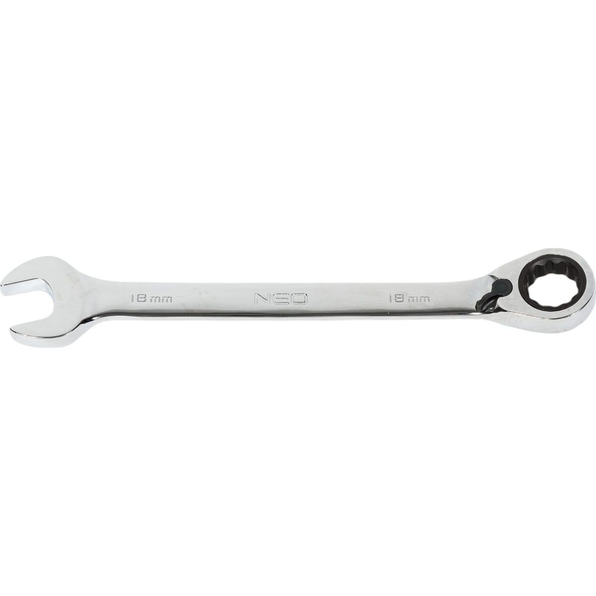 Комбинированный ключ NEO с трещоткой, 18 мм 09-330 оснащен трещоткой с 72 зубцами. Ключ обеспечивает быструю и точную работу. Высокосортная хромованадиевая сталь гарантирует долголетнюю прочность.