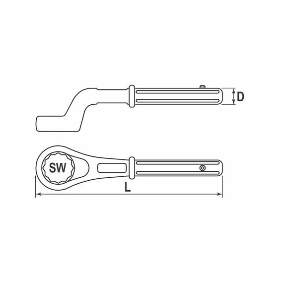 Прочное основание головки имеет увеличенную ширину. Это удобно при работе с большим усилием. Обеспечивает увеличенный срок службы при активной эксплуатации инструмента. Тело выполнено из CrV стали - защищено от коррозии.