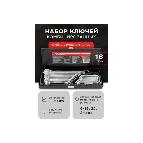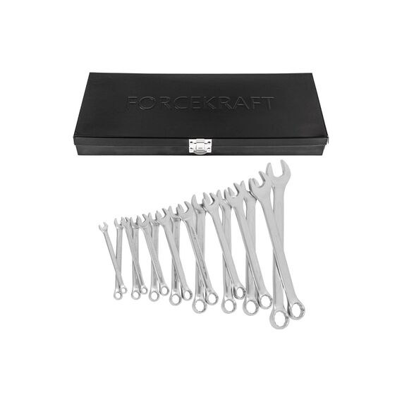 Набор ключей комбинированных 16 предметов в металлическом кейсе от бренда FORCEKRAFT- самый распространённый и популярный тип гаечного ключа, сочетающий в конструкции рожковый и накидной профили.