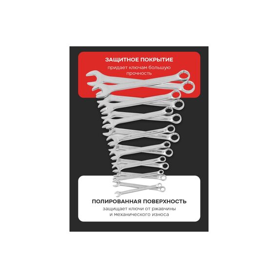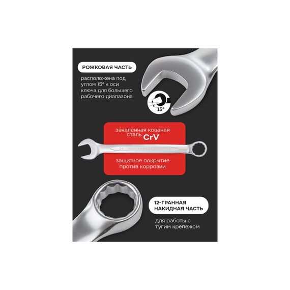 -Ключи: 6, 7, 8, 9, 10, 11, 12, 13, 14, 15, 16, 17, 18, 19, 22, 24 мм
