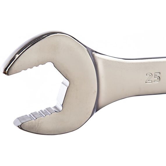 Наличие головок двух типов существенно повышает качество работы. Накидная головка обеспечивает полный обхват, рожковая облегчает доступ к крепежу с боковой стороны.