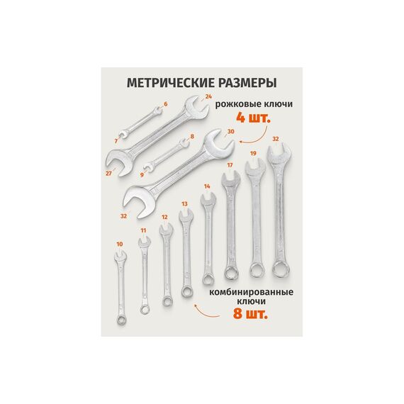 -Комбинированные ключи: 10, 11, 12, 13, 14, 17, 19, 32 мм. - 8шт