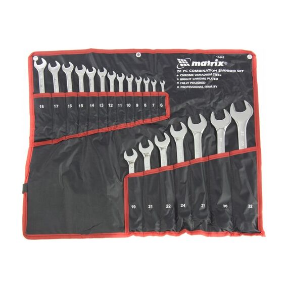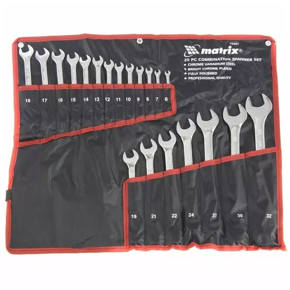 Набор ключей комбинированных MATRIX 15441 6-32мм, 20шт, CrV, полированный хром