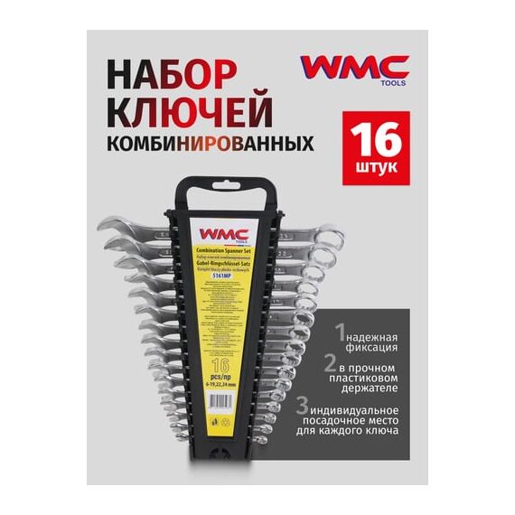 Набор ключей комбинированных WMC TOOLS WMC-5161MP(50005) 16 предметов