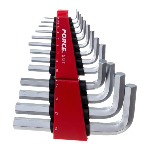 Набор Г-образных шестигранников 2-19 мм, 13 предметов FORCE 5137 подойдет для работы с крепежом любой сложности.