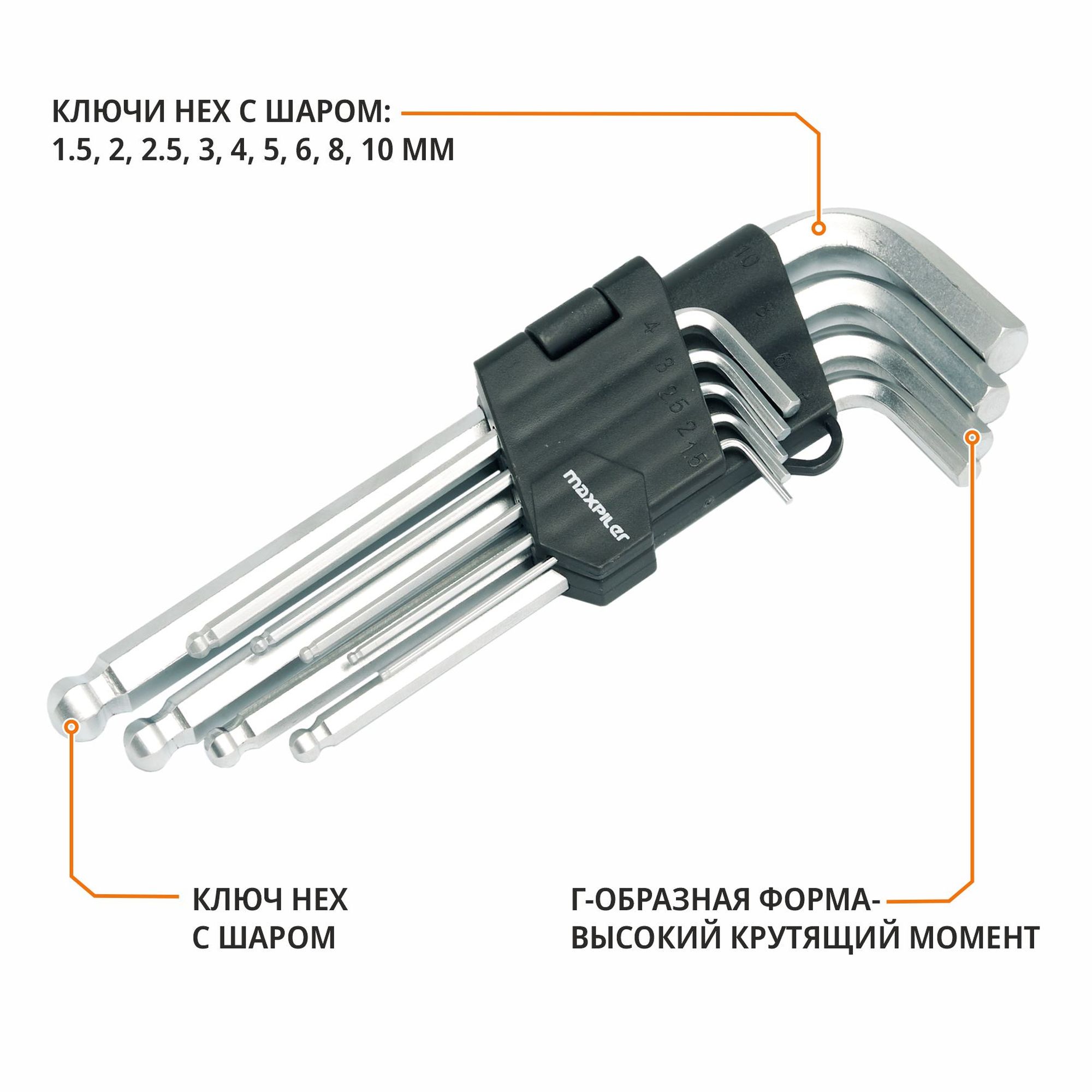 Набор шестигранных ключей с шаром Maxpiler MXT-9-Set 9шт