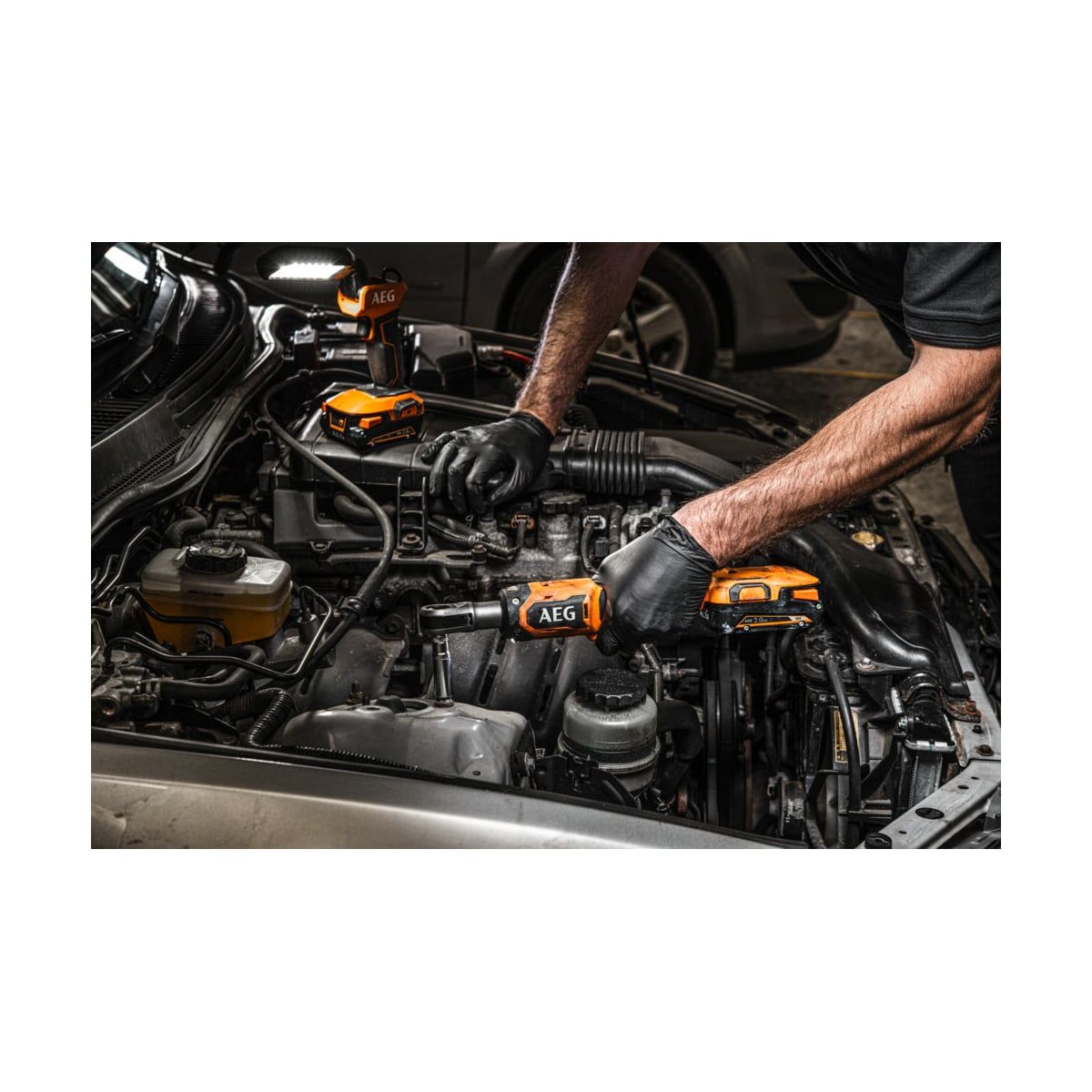 Трещотка AEG BSS18R38BL-0 4935480053 используется для закручивания болтов и гаек. Мощный двигатель обеспечивает крутящий момент до 74 Нм на шпинделе сверхкомпактной рабочей головки.