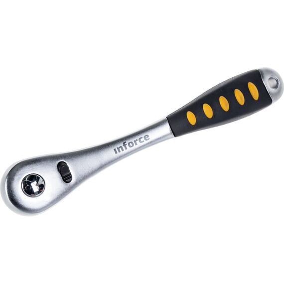 Трещотка Inforce 3/8" DR 06-05-110 оснащена удобной двухкомпонентной рукоятью. Специальный профиль исключает выскальзывание и упрощает вращение.