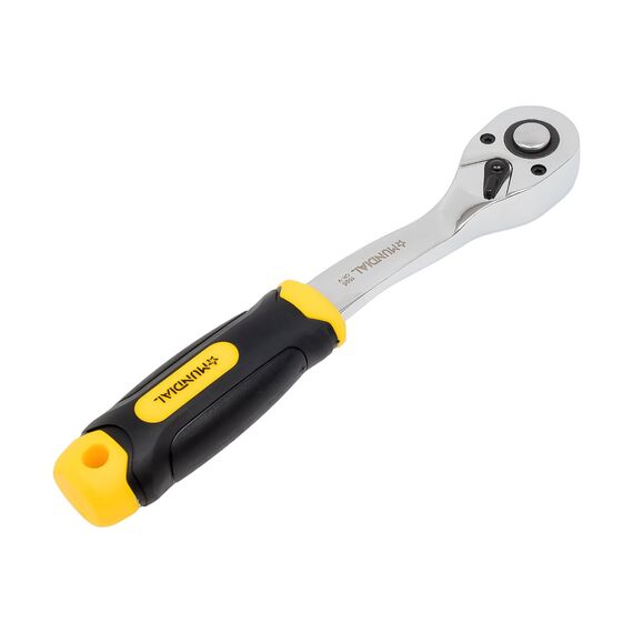 Ключ-трещотка с инновационной системой быстрого сброса, изготовленный из высокопрочной хромованадиевой стали с хромированным покрытием для максимальной защиты от коррозии и износа. Изогнутая рукоятка, объединенная с удобной пластиковой ручкой, обеспечивает оптимальный доступ к труднодоступным местам и снижает усталость при работе. Механизм быстрого сброса позволяет мгновенно отсоединить головку ключа, существенно ускоряя работу и повышая эффективность. Прочный и надежный, этот ключ-трещотка — незаменимый инструмент как для профессионалов, так и для требовательных пользователей, которым важна скорость и удобство работы.