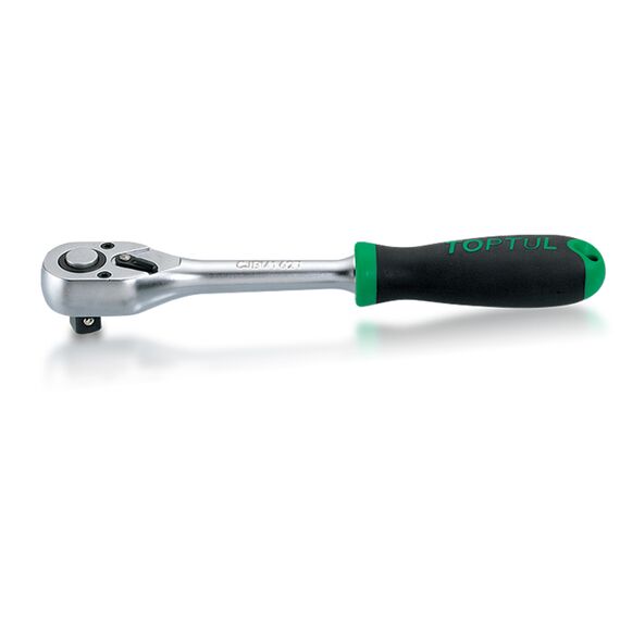 Трещотка 1/2" 72 зубья 265 мм TOPTUL (CJBM1627) применяется с головками, имеющими присоединительный размер 1/2". Инструмент оснащен механизмом быстрой смены головок и удобной прорезиненной ручкой. Рекомендуется для профессионального использования.