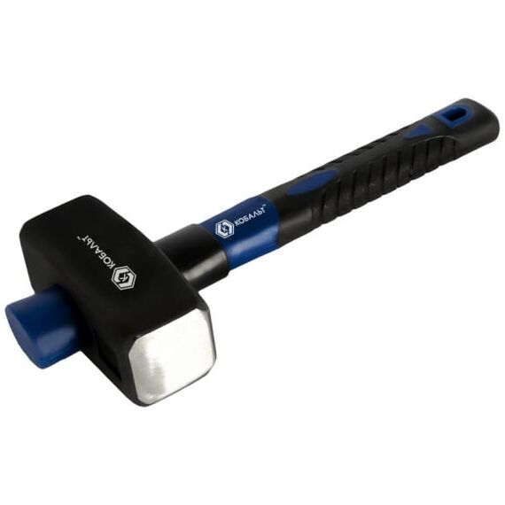 Кувалда предназначена для разрушения кирпичных кладок и забивания кольев и гвоздей. Рукоятка обратного типа гарантирует безопасность работ, исключая соскальзывание бойка. Также на ручке из фибергласа имеются резиновые вставки для комфорта во время работы. Благодаря бойку весом 1.5 кг инструмент имеет большую ударную силу.