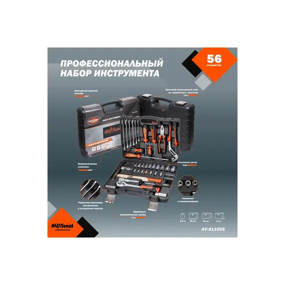 Набор инструментов Av Steel AV-011056 56 предметов (жесткий кейс)