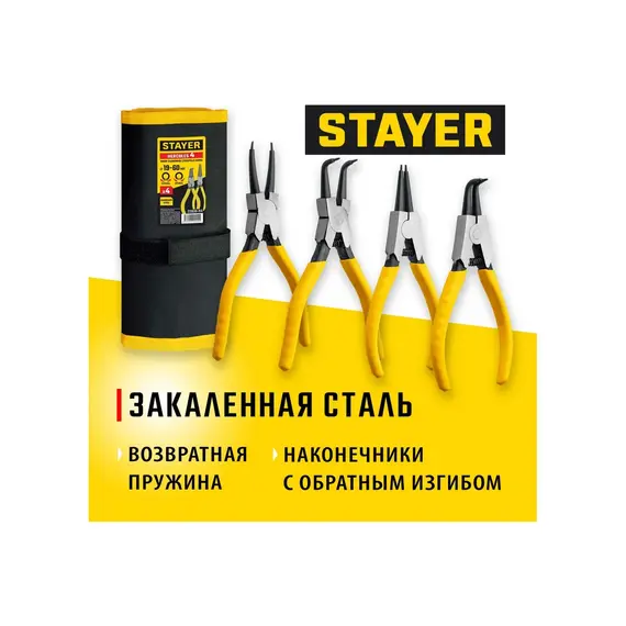 Технические характеристики набора съемников стопорных колец STAYER Hercules-4 22830-H4