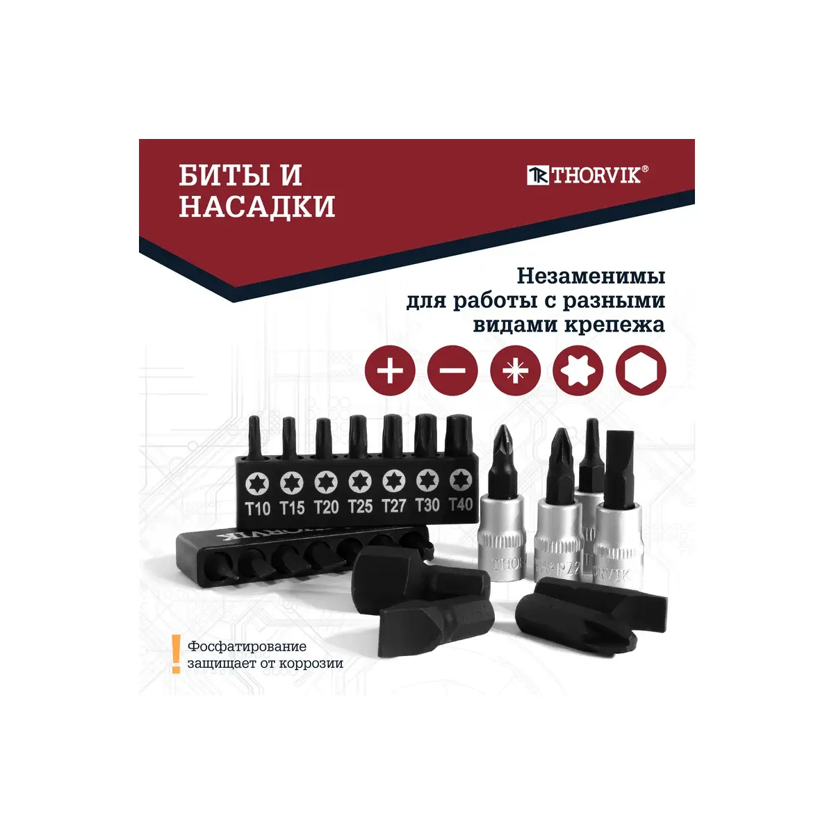 Инструментальные наборы Thorvik - это высокое качество изделий, входящих в состав наборов, удобные прочные кейсы для хранения, оптимальная комплектация позволяющая удовлетворить потребность мастера при обслуживании техники и обеспечить всем необходимым рабочее место при производстве комплексных слесарно-монтажных или механосборочных работ. Наборы Thorvik имеют ударопрочный морозоустойчивый кейс с надежными защелками. Самые полные и удобные по наполнению комплектации для всех типов задач.